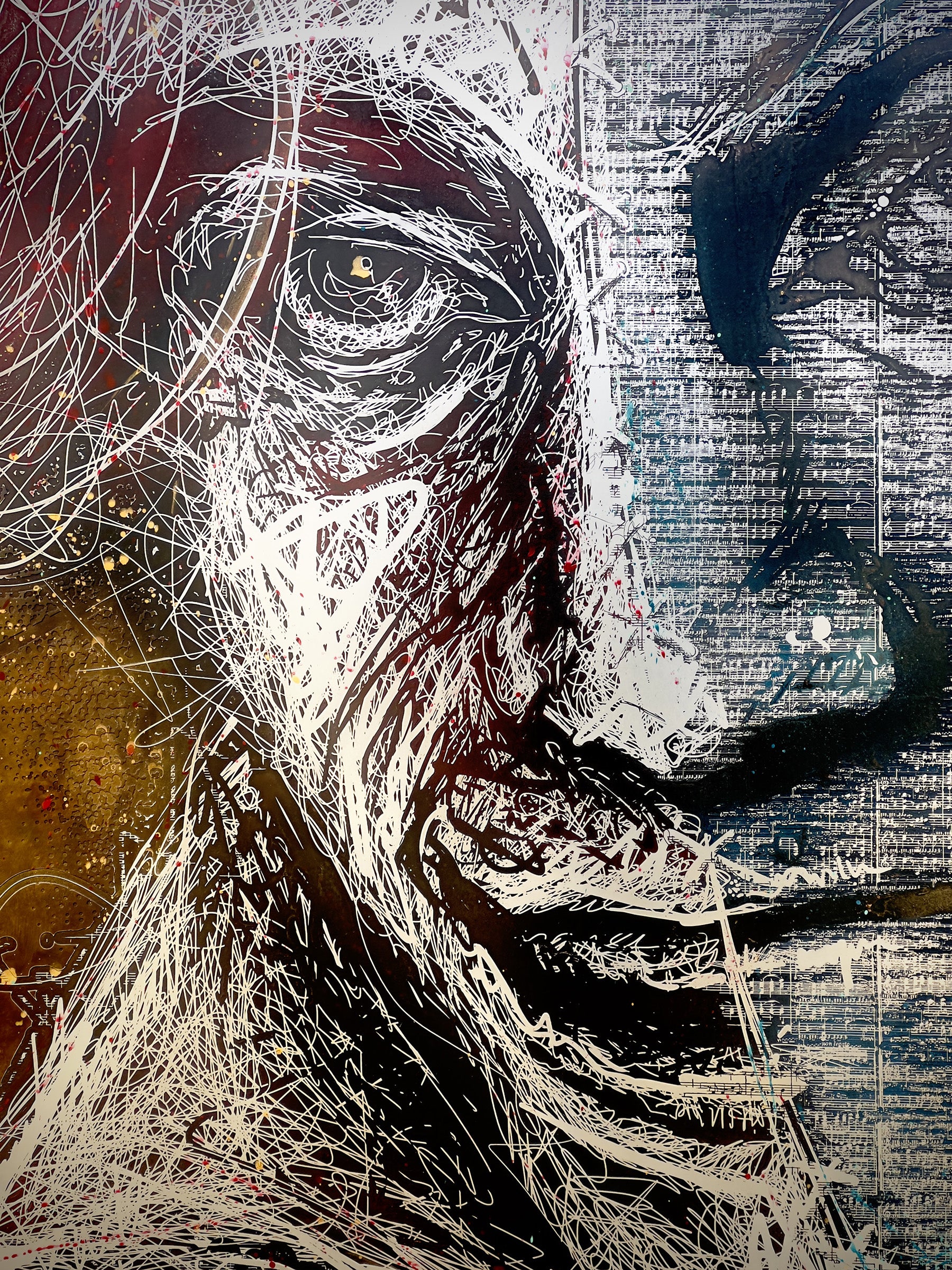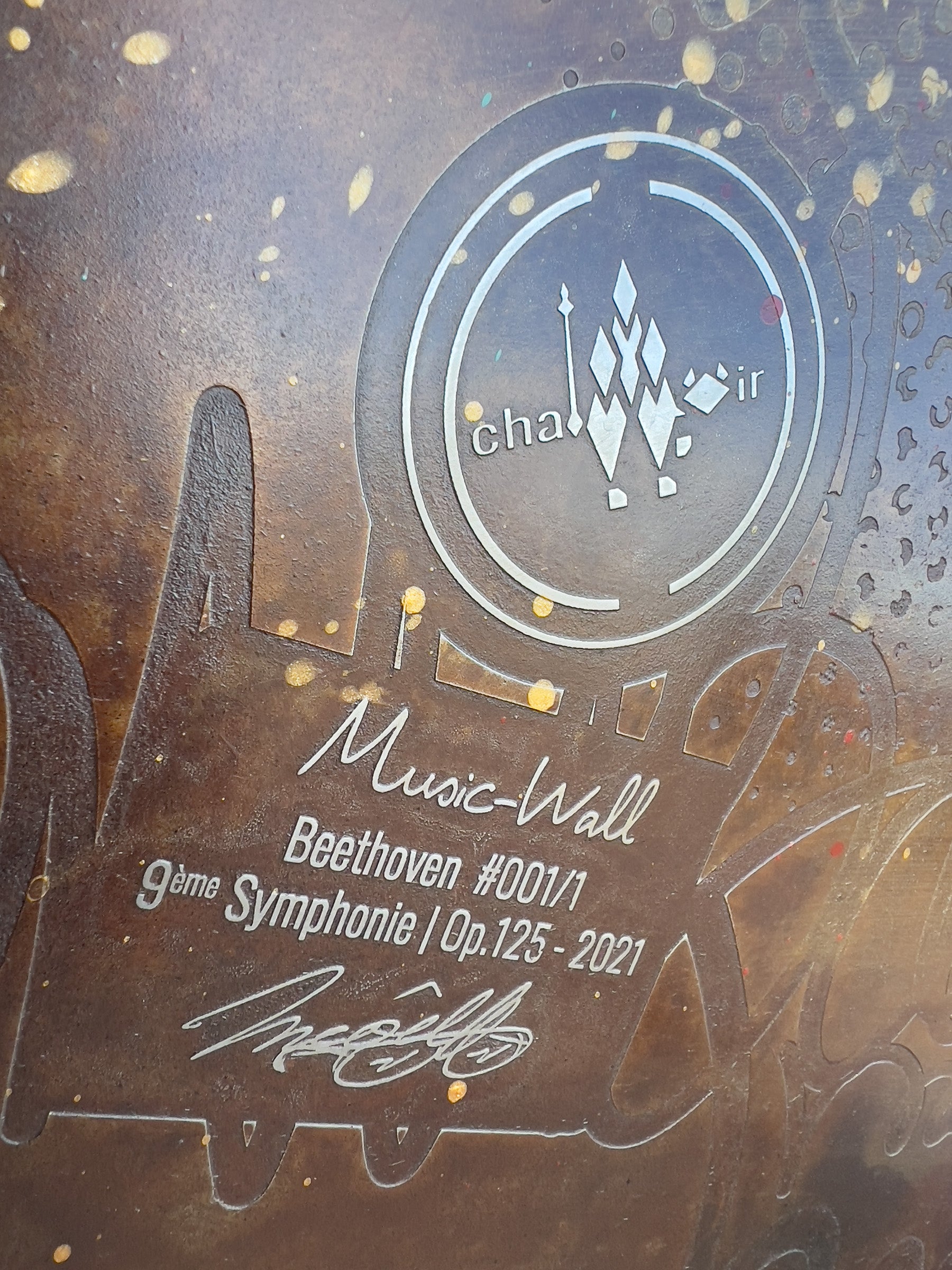 Découvrez Beethoven The Hide, une gravure d'art unique sur acier brut qui représente le visage de Beethoven à l'aide de notes de sa neuvième symphonie et d'un trait libre symbolisant sa folie et son génie.