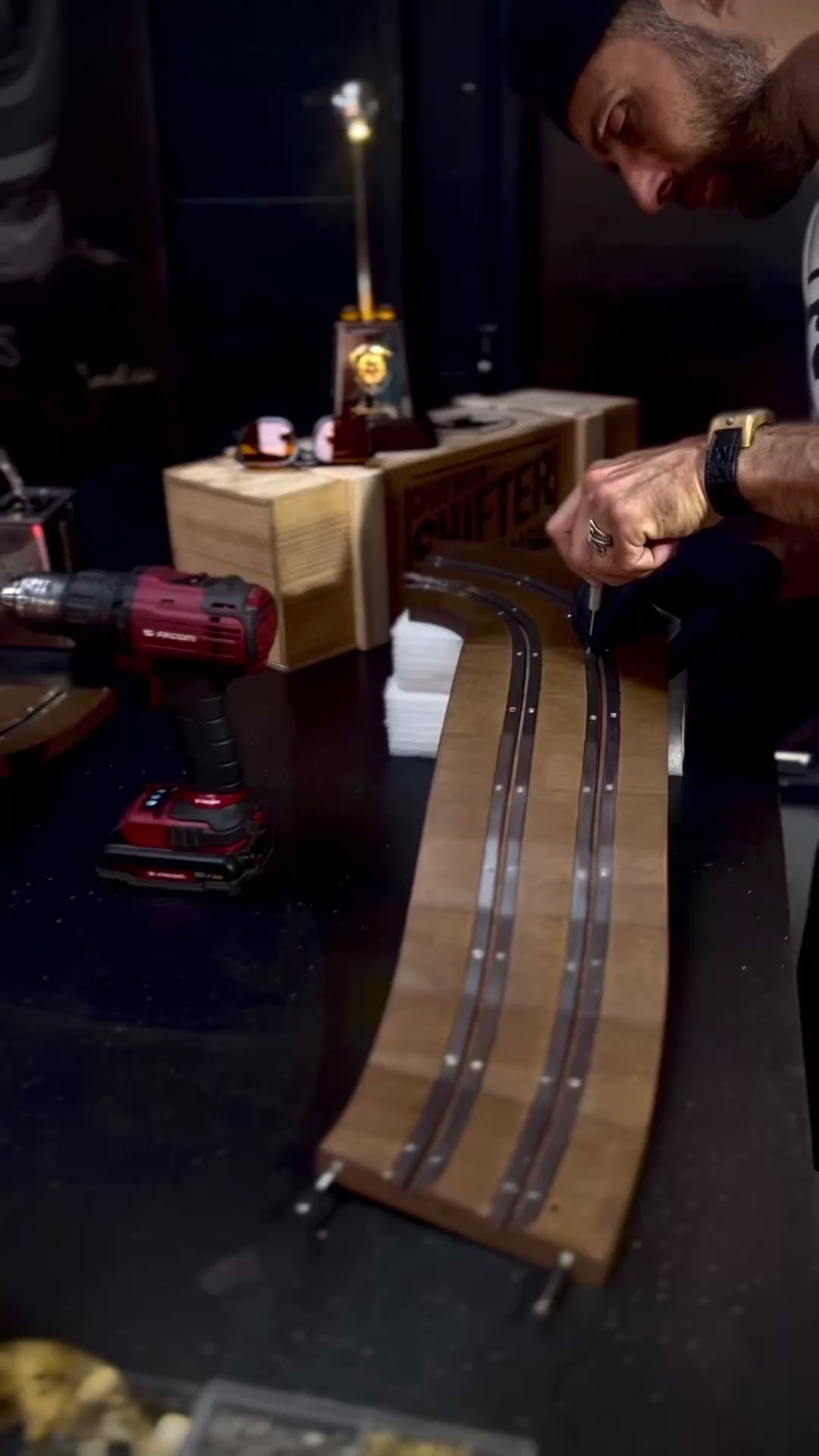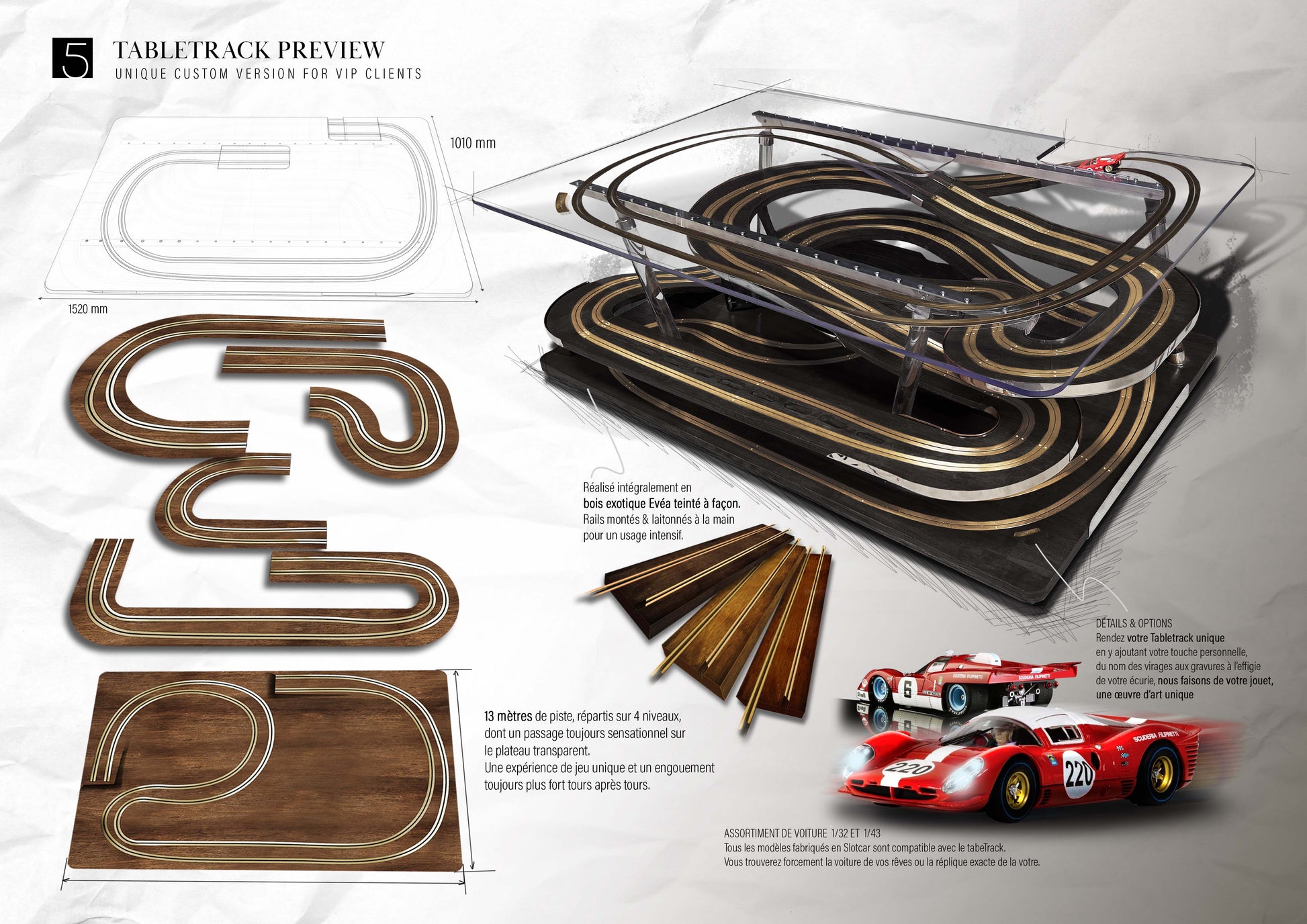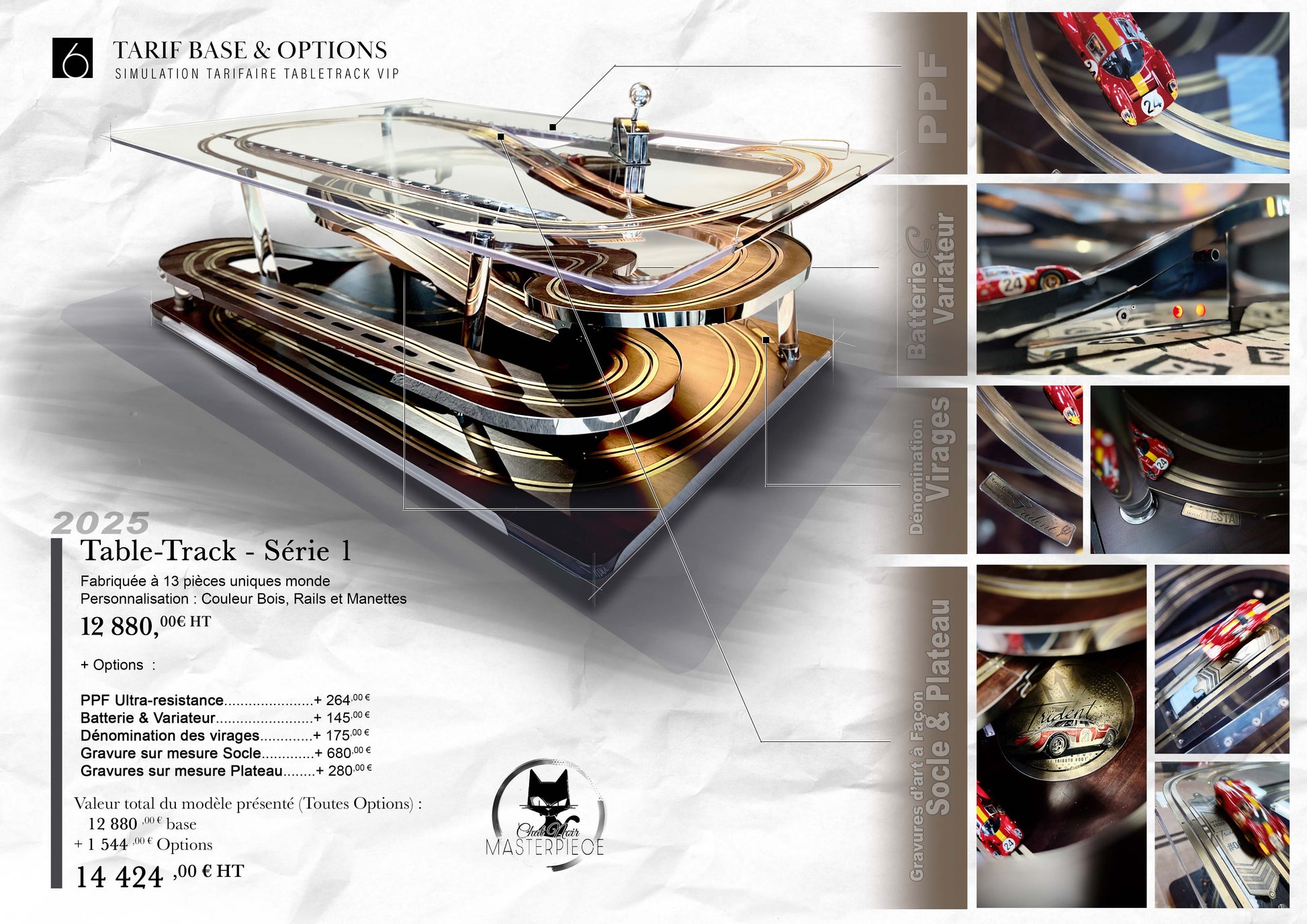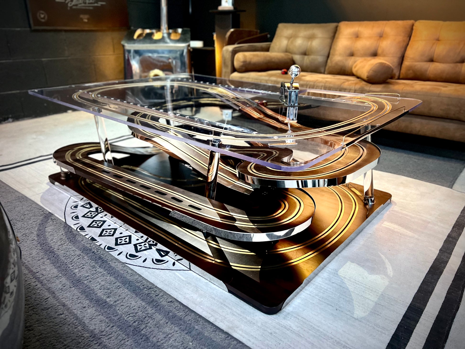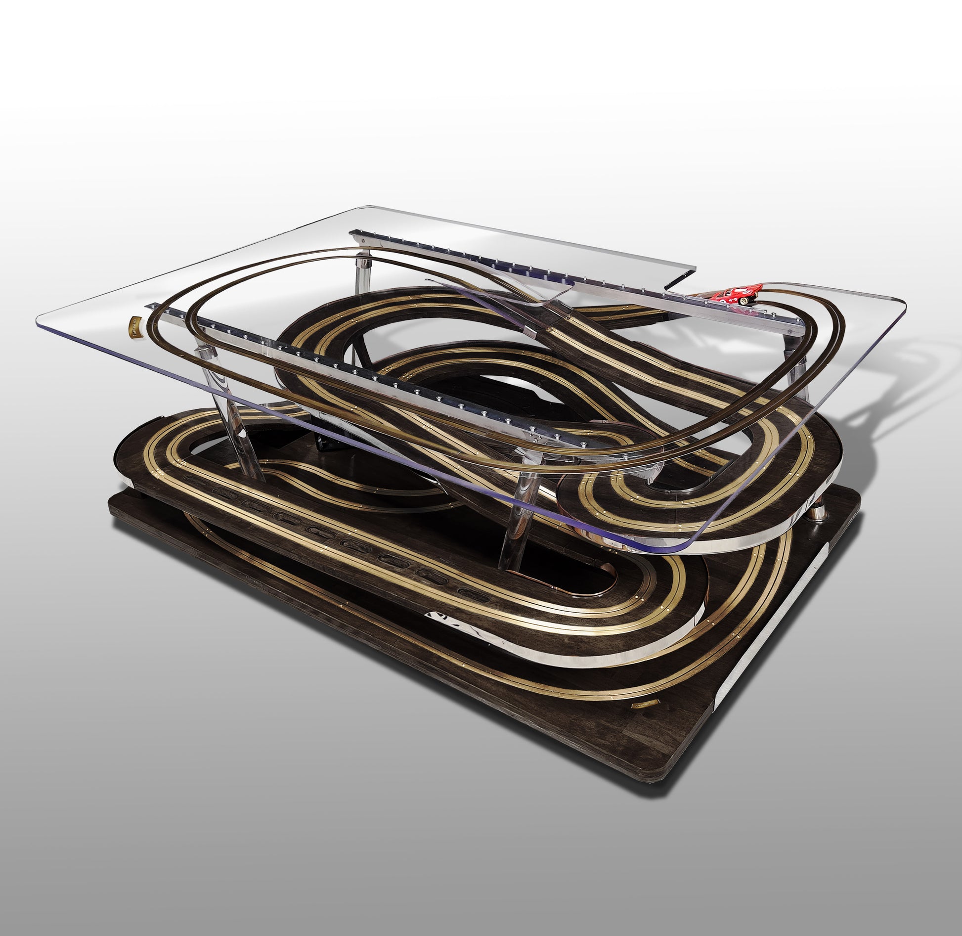 La Tabletrack Série #001 allie design raffiné et innovation technique en intégrant un circuit électrique miniature pour petite voiture directement dans sa surface. Conçue pour les amateurs de luxe et de technologie, cette table basse offre une expérience ludique et élégante, parfaite pour dynamiser votre espace de vie tout en conservant une esthétique sophistiquée. Sa structure robuste et ses finitions haut de gamme assurent durabilité et style, faisant de chaque moment un équilibre entre détente et divertissement.