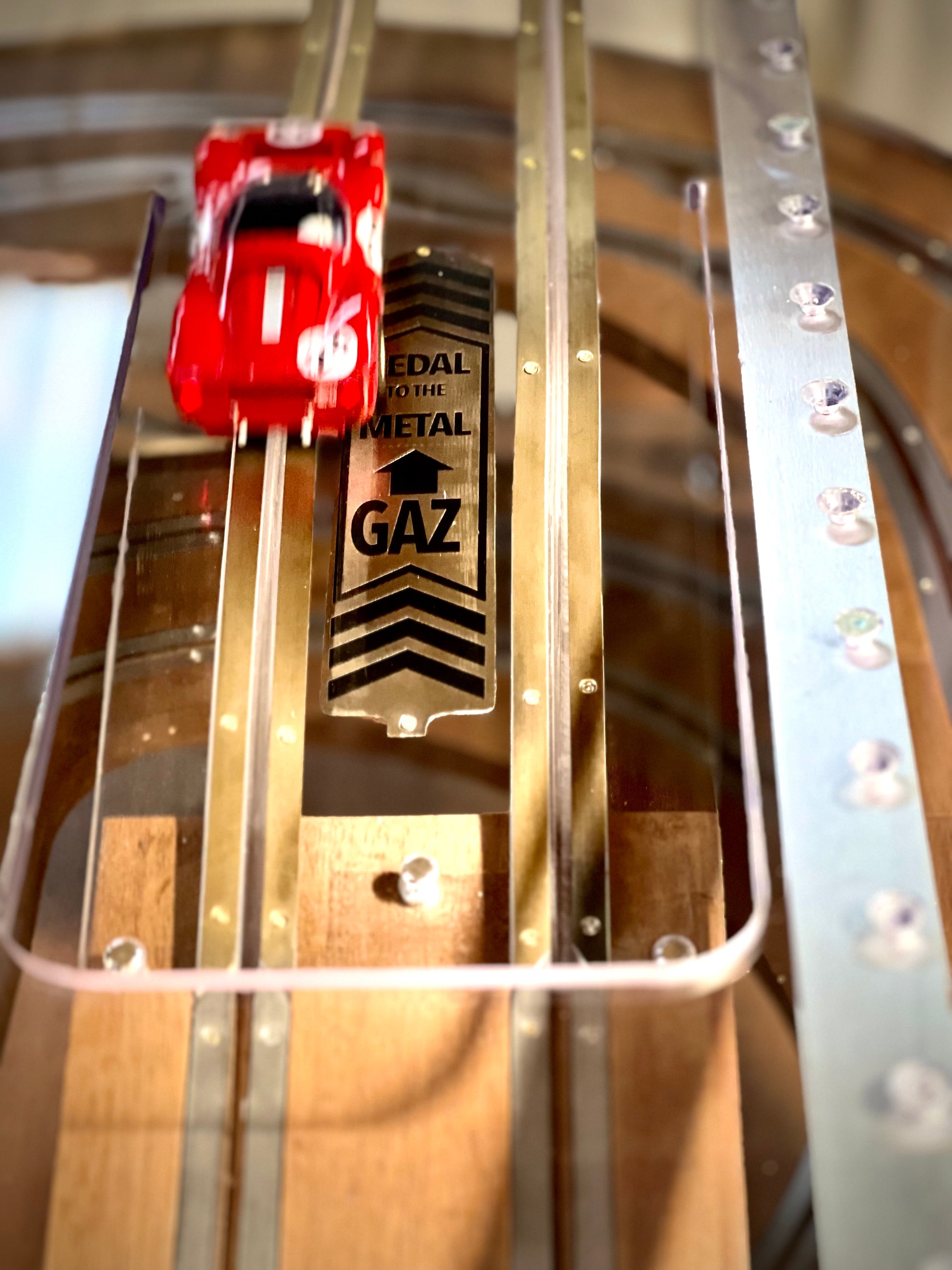 Gravures à façon pour personnaliser à l’extrême sa propre Tabletrack, dénomination des virages et thème global ( Le Mans Classic, mille miglia, Porsche…) autant de sujet qui vous inspirent.