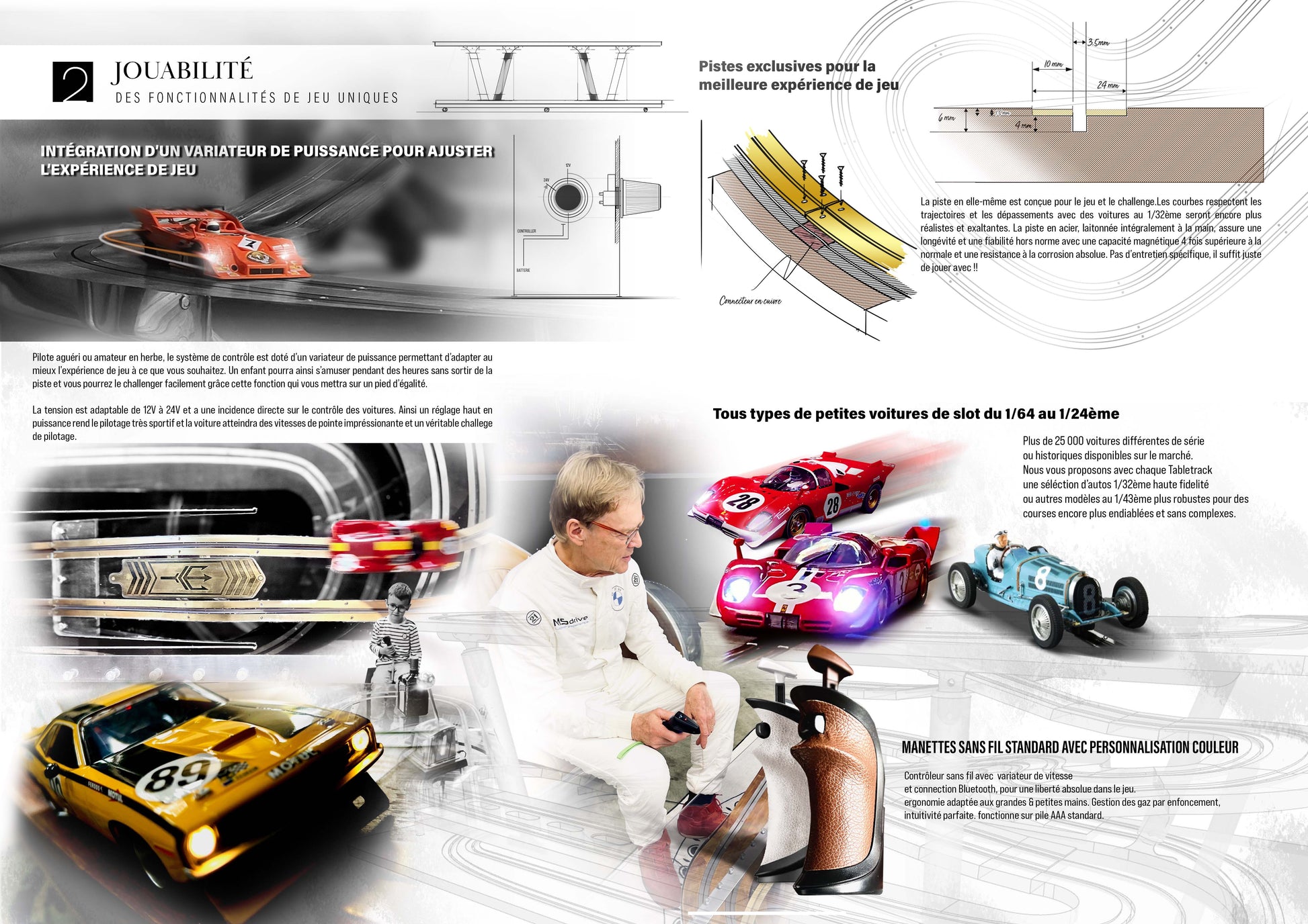 13 mètres de pistes intégralement laitonnées à chaud et alimentées par batterie lithium dernière génération.